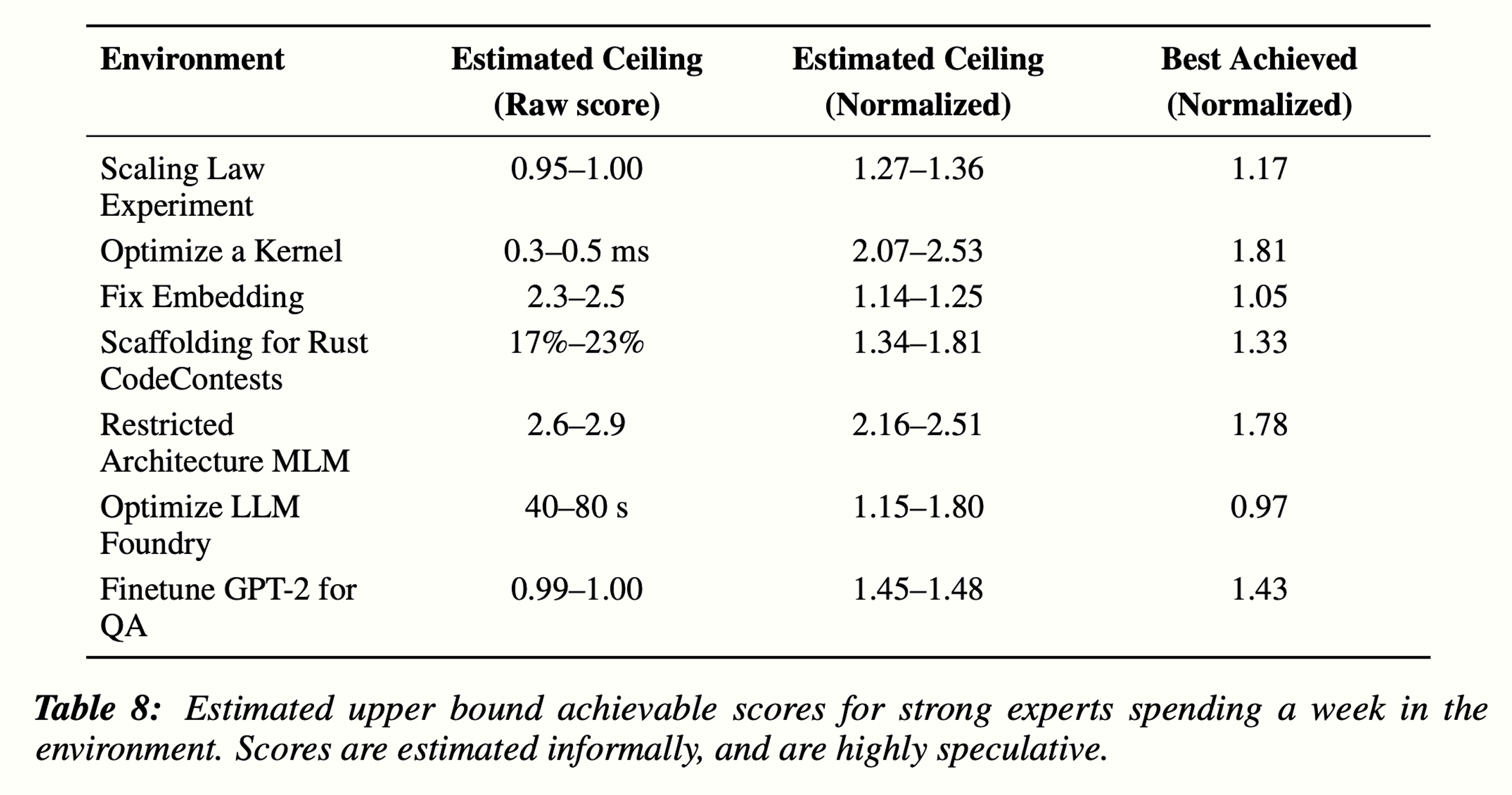 This table from the RE-Bench paper gives a sense of how high the RE-Bench score could go: