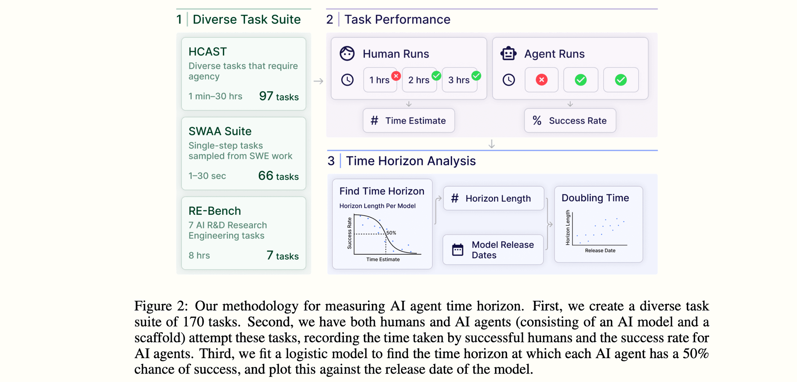 METR’s recent report measures the “time horizon” capability of AI systems, where time horizon is defined based on how long it takes a skilled human to complete tasks (more details in footnote).